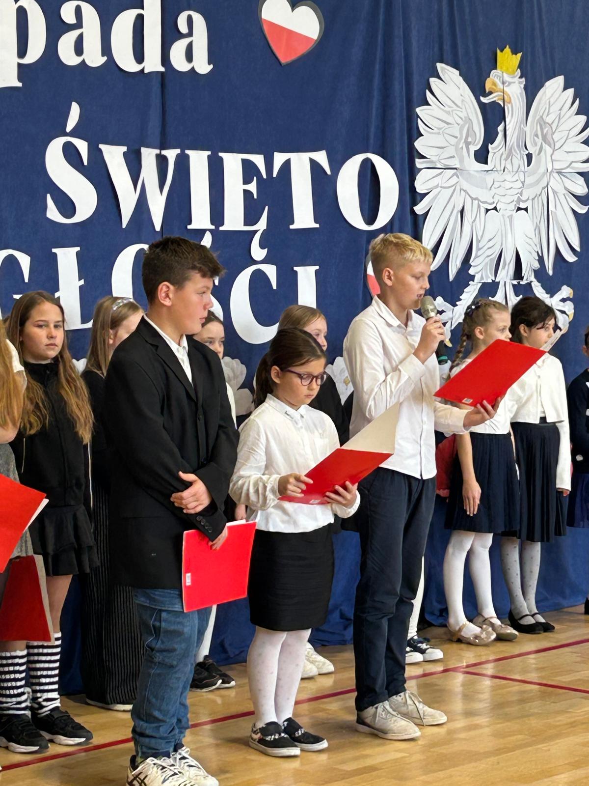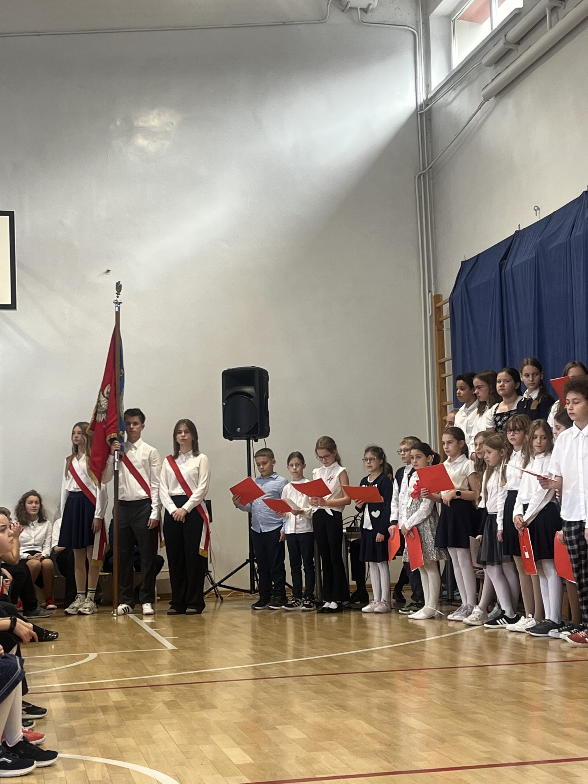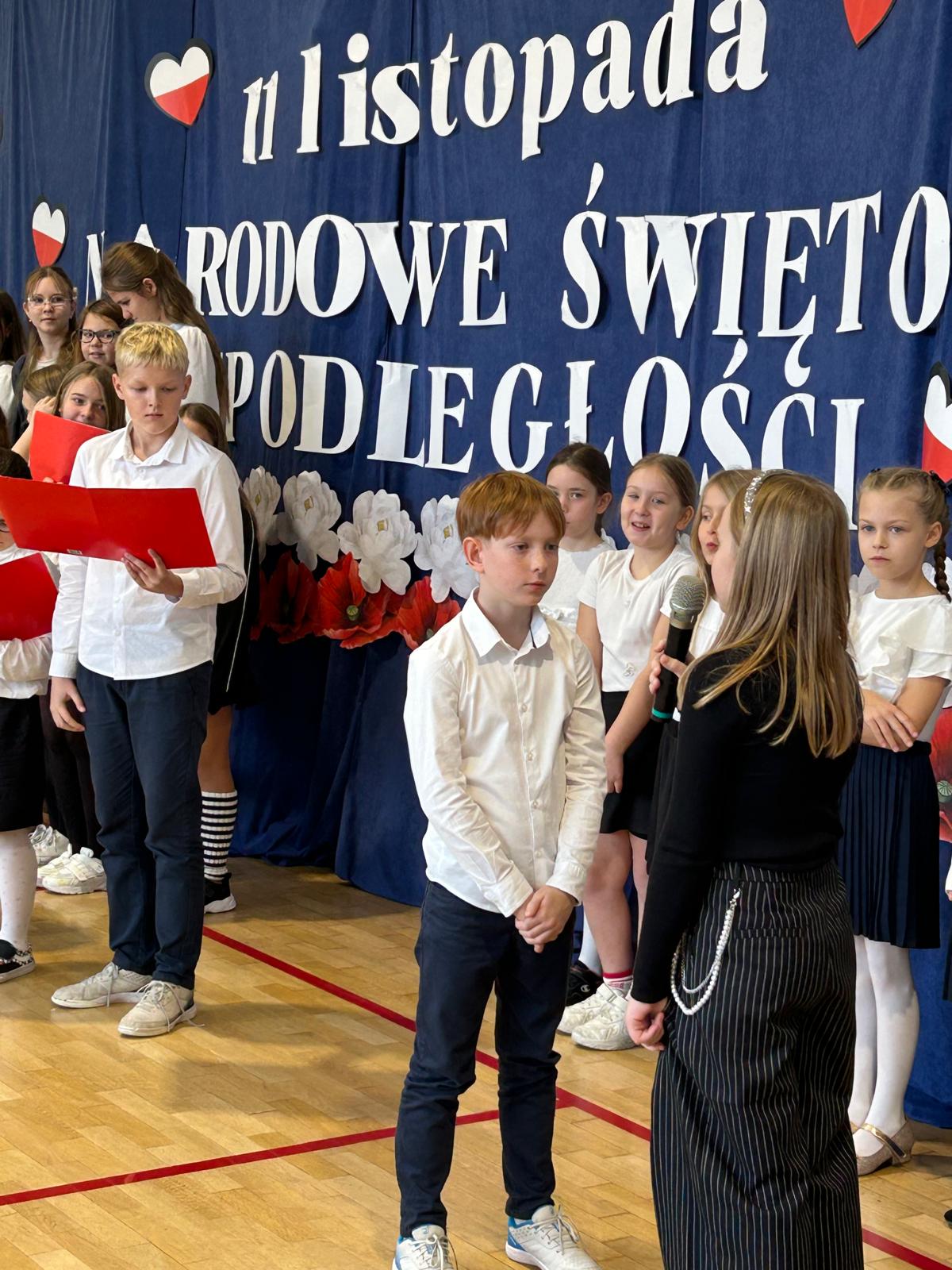 oraz przy udziale chóru szkolnego, a także uczniów klas 3b i 5c, mogliśmy przekonać się, że świętować niepodległość można również poprzez sztukę — muzykę, słowo i wspólne przeżywanie historii.